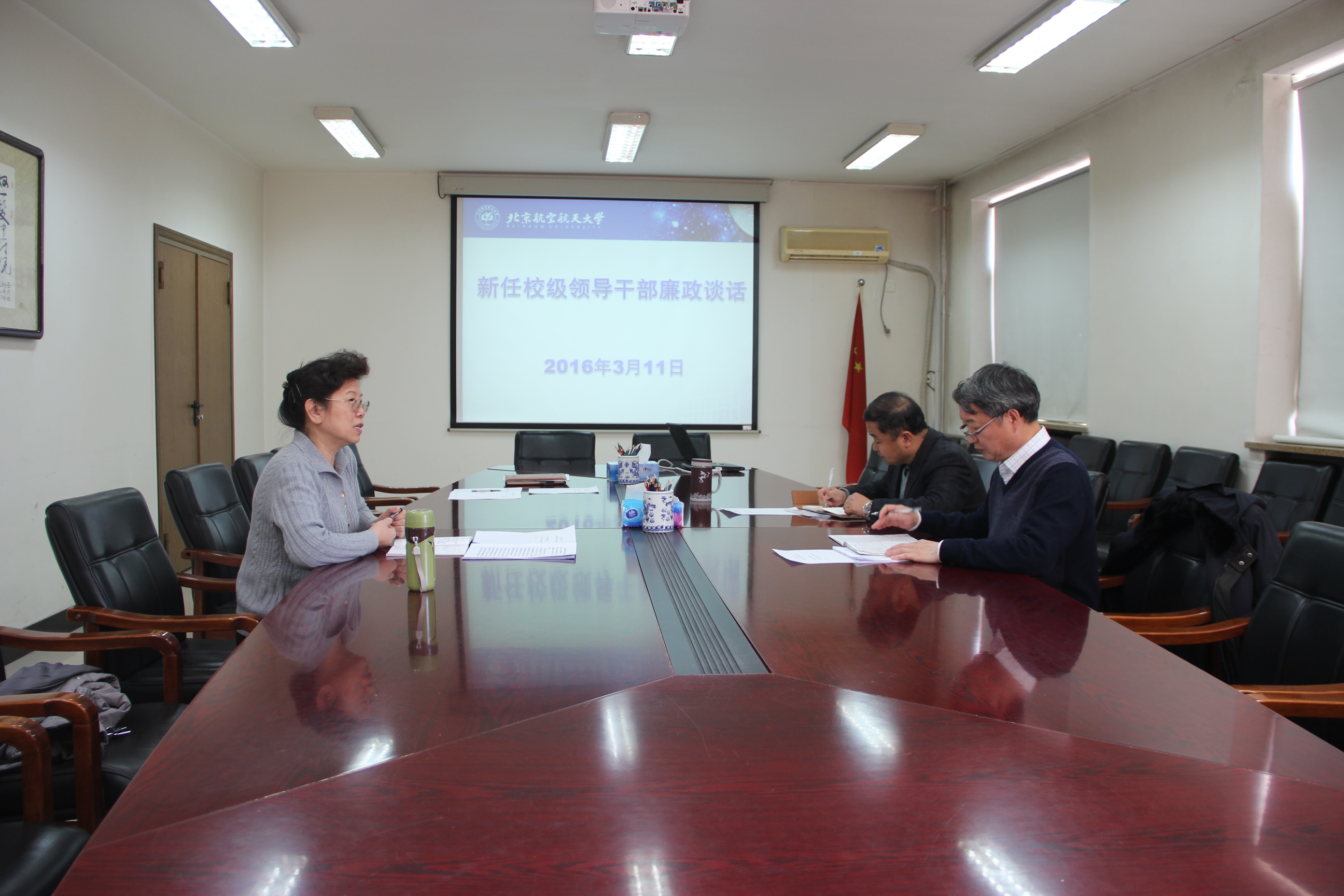 根据《北京伊人99新任领导干部廉政谈话制度》和校党委安排,3月11日,校纪委书记纪素菊对新任副校长房建成同志、黄海军同志进行廉政谈话。