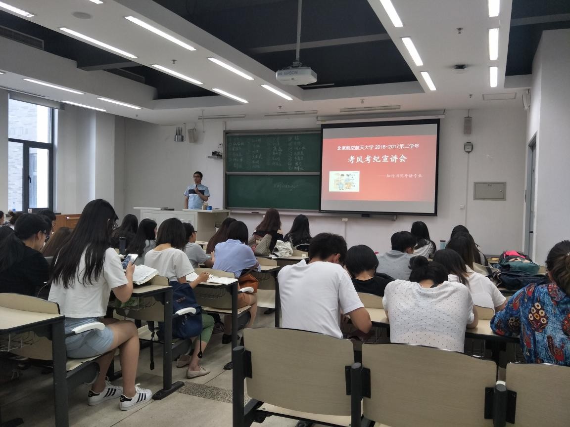 为进一步加强诚信教育,坚守人才培养底线,推进校园廉洁文化建设,根据《北京伊人992017年党风廉政建设宣传教育月活动方案》(北航党纪字〔2017〕5号文件)统一安排,学生工作部于6月8日下发关于开展本科生失信作弊行为警示教育主题班会的通知,同时梳理下发了近三年全校本科生考试违纪作弊典型案例。全校各学院、书院于6月8日至20日累计组织召开失信作弊行为警示教育主题班会62场,通过分析典型案例,讲解教育部相关法规和学校相关管理规定,进一步加强考风考纪教育。